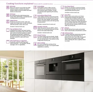 Функции помощи при приготовлении блюд: PerfectBake Plus, PerfectRoast Plus для автоматически идеальных результатов, увлажненного пропаривания и бережного приготовления на пару. Home Connect для управления через приложение.