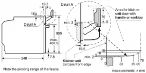 Рекомендуемый размер ниши (В×Ш×Г): 585–595 × 560–568 × 550 мм