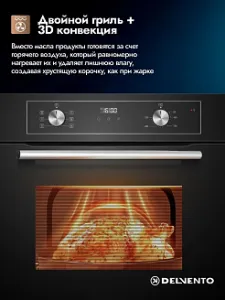 Конвекционный вентилятор обеспечивает постоянную циркуляцию горячего воздуха по всей камере, что позволяет равномерно запекать блюдо со всех сторон, а также экономить время на приготовление. Режим конвекции особенно оценят любители приготовления выпечки.