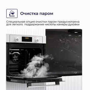 Специальный режим поможет очистить поверхность камеры благодаря использованию пара и влаги. Достаточно выбрать программу очистки «Steam Cleaning» и температура нагрева и длительность работы будут установлены автоматически. По завершению процесса достаточно будет промыть поверхность влажной тканью. В большинстве случаев даже не используя химические средства!
