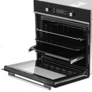 Встроенный вентилятор защищает прилегающую мебель от чрезмерного нагрева. Среди других особенностей модели отмечаются телескопические направляющие, тройное остекленение дверцы, таймер приготовления. В комплекте с духовым шкафом DEXP 1M70GDB поставляются 2 противня разной глубины и решетка.