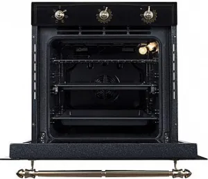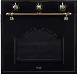 Полноразмерный духовой шкаф Graude BK 60.2 S объемом 73 л выполнен в классическом черном цвете. Изящная форма смотрового окошка и переключатели из бронзы подчеркивают стиль Classic бытовой техники, который идеально подойдет для кухонь в ретро-дизайне или в стиле эклектика.