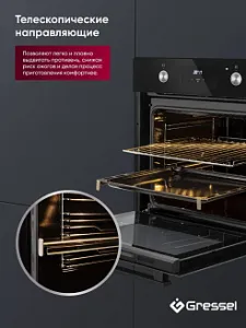 Телескопические направляющие надежно удерживают противень на двух уровнях, что дает еще больше безопасности и комфорта – противень не нужно удерживать в руках, чтобы проверить качество приготовления блюд.