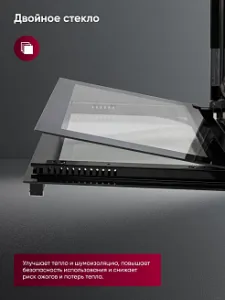 Предлагает внушительную вместимость 70 литров и широкий ассортимент режимов приготовления, что делает его идеальным выбором для современной кухни. С его помощью можно легко готовить большие объемы пищи или несколько блюд одновременно, благодаря функциям двойного гриля, конвекции и специальному режиму разморозки.