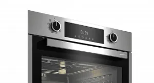 Усовершенствованный механизм плавного закрытия дверцы поможет справиться с неудобствами при эксплуатации стандартных духовых шкафов.