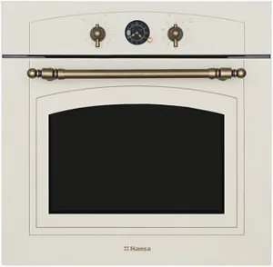 Духовой шкаф Hansa BOEW68269 выполнен в цвете «Слоновая кость» и прекрасно будет сочетаться с другой техникой из коллекции Retro. Поворотные переключатели и аналоговый программатор позволяют быстро выбрать и настроить нужные параметры приготовления.