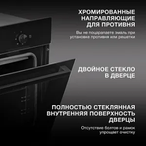 Безопасная эксплуатация. Дверца Hyundai 6003.01 BG оборудована двойным стеклом, поэтому духовка хорошо удерживает жар внутри и не нагревается снаружи.