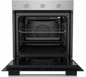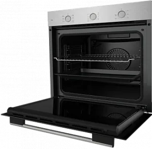 Прибор обладает объемом 80 л, что позволяет готовить большое количество блюд одновременно. В нем предусмотрено 7 режимов работы, включая традиционный нагрев, нагрев с конвекцией, нижний и верхний нагрев, а также режим разморозки. Такой широкий выбор режимов позволяет готовить любые блюда, сохраняя их вкус и аромат. Управление духовкой осуществляется с помощью электронного программатора и поворотных переключателей, что делает ее использование максимально удобным и простым. Дополнительным удобством является наличие таймера, который поможет контролировать время приготовления блюд. Очистка духового шкафа не вызовет трудностей благодаря гидролизной системе очистки и эмали легкой очистки. Съемная дверца и внутреннее стекло облегчают уход за духовкой.