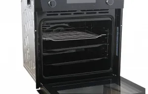 В комплект входят пара телескопических направляющих, универсальный и глубокий противни, решетка для гриля.