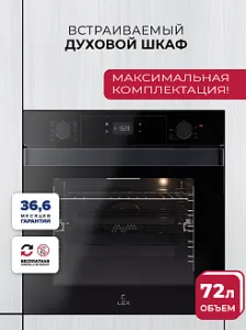 Духовой шкаф LEX EDP 610 Wide Series — сочетание удобства и функциональности Эта модель серии Wide выделяется стильной широкой ручкой, наличием 10 программ и смешанным управлением с LED экраном. Вместительная камера объемом 72 литров, обеспечит удобство и комфорт в использовании. Тройное стекло дверцы гарантирует отличную теплоизоляцию, сохраняя стабильную температуру внутри шкафа. Хромированные телескопические направляющие — удобство и безопасность в использовании Духовой шкаф LEX EDP 610 Wide Series оснащен хромированными телескопическими направляющими, которые обеспечивают легкий доступ к блюдам во время готовки. Они позволяют безопасно и удобно извлекать противни, минимизируя риск ожогов и облегчая процесс приготовления. Широкая цветовая палитра для идеального сочетания с вашим интерьером Модель LEX EDP 610 Wide Series доступна в различных цветовых решениях: White (белый), Black (черный), Dark Inox (темная нержавеющая сталь), Grey (серый) и Inox (нержавеющая сталь). Такой выбор позволяет подобрать духовку, которая гармонично впишется в дизайн вашей кухни. Black (черный) Черный цвет придает духовке элегантность и строгость, делая ее стильным акцентом в современном интерьере. LEX EDP 610 Wide Series — 10 режимов для ваших кулинарных экспериментов Широкий выбор режимов позволяет адаптировать духовку под любой рецепт. Среди них — традиционный нагрев, конвекция с кольцевым нагревательным элементом, гриль и размораживание, что делает модель универсальной для готовки любых блюд. Мощность гриля 1200 Вт и температурный диапазон от 50 до 270°C обеспечивают быстрое и качественное приготовление пищи с идеальной текстурой. Точная настройка для удобного использования Смешанное управление сочетает сенсорные и механические элементы, обеспечивая точную регулировку параметров. LED-дисплей отображает все необходимые данные, а цифровой таймер помогает задать точное время готовки. Хромированные телескопические направляющие добавляют удобства, позволяя безопасно размещать и извлекать противни на нужной высоте. Безопасность и простота ухода Тройное стекло дверцы защищает от перегрева, а термостат обеспечивает дополнительную надежность. Каталитическая система очистки значительно облегчает уход за духовкой, помогая легко удалять жировые загрязнения. Быстросъемная дверца и набор телескопических направляющих делают процесс эксплуатации комфортным и безопасным. Идеальные результаты для каждого блюда Благодаря режимам конвекции и гриля, блюда готовятся равномерно и получают аппетитную корочку. Духовой шкаф с энергоэффективностью класса A позволяет готовить не только вкусно, но и экономично, делая этот процесс максимально приятным и удобным.