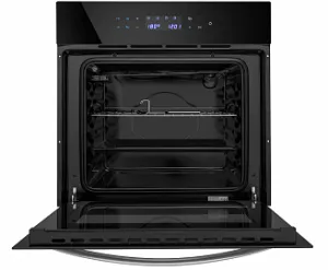 - Объем 56 л при стандартных размерах 60 см позволяет готовить одновременно несколько блюд, разместив решетку или противень на одном из 5 уровней боковых направляющих.