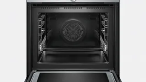 Духовой шкаф обладает цветным сенсорным дисплеем. Он позволяет настраивать оборудование в соответствии с желаниями и предпочтениями пользователя. Меню легко пользоваться, так что регулирование работы духовки не принесет хлопот. Современный и интуитивно понятный дисплей позволяет следить за всем процессом приготовления пищи.