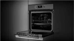 Духовой шкаф HSB 630 BLACK стильного черного цвета подходит для современной кухни. Матовая панель управления, которую составляют поворотные переключатели и сенсорный программатор, позволяет легко манипулировать режимами приготовления. Фурнитура из нержавеющей стали покрыта специальным защитным слоем, который предотвращает появление следов от рук и отпечатков пальцев. Система Hydroclean обеспечивает быструю очистку паром, что упрощает процесс ухода за прибором.