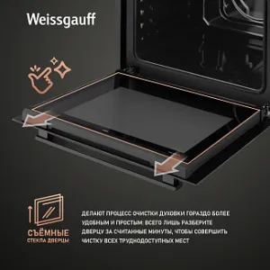 - Великолепный дизайн, станет финальным штрихом в совершенстве облика этой модели. Каждый раз, взаимодействуя с духовым шкафом от Weissgauff, вы будете в полной мере ощущать, как он способен нагревать не только еду, но и согревать душу, став настоящим сердцем вашего уютного домашнего очага.