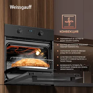 - Дизайн в черном цвете - станет финальным штрихом в совершенстве облика этой модели. Каждый раз, взаимодействуя с духовым шкафом от Weissgauff, вы будете в полной мере ощущать, как он способен нагревать не только еду, но и согревать душу, став настоящим сердцем вашего уютного домашнего очага.