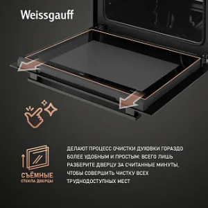 - Великолепный дизайн, станет финальным штрихом в совершенстве облика этой модели. Каждый раз, взаимодействуя с духовым шкафом от Weissgauff, вы будете в полной мере ощущать, как он способен нагревать не только еду, но и согревать душу, став настоящим сердцем вашего уютного домашнего очага.