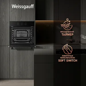 Новое поколение электрических духовых шкафов от Weissgauff предлагает модель, выполненную в чёрном цвете, оснащённый механическими поворотными рукоятками Soft Switch, таймером и двойным остеклением дверцы воплощает в себе принцип разумной достаточности, предлагаю пользователю только самые необходимые и нужные режимы по действительно доступной цене! А фантастический увеличенный объем 65 литров дополнит совершенство возможностей этого устройства! Благодаря всему этому вы сможете полностью управлять процессом приготовления пищи, добиваясь идеального результата каждый раз! Духовой шкаф Weissgauff станет не только отличным приобретением для вашей кухни, но и настоящим украшением интерьера, отражающим все благородство вашего вкуса и стиля!