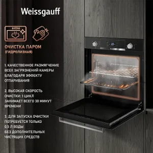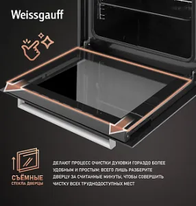 - Великолепный дизайн, станет финальным штрихом в совершенстве облика этой модели. Каждый раз, взаимодействуя с духовым шкафом от Weissgauff, вы будете в полной мере ощущать, как он способен нагревать не только еду, но и согревать душу, став настоящим сердцем вашего уютного домашнего очага.