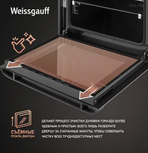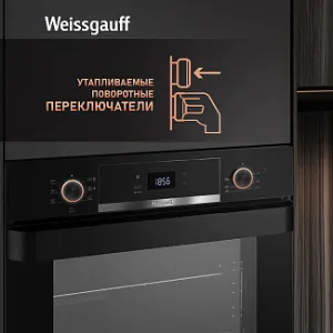 - Великолепный дизайн, дополненный вставкой из стекла под дисплеем, станет финальным штрихом в совершенстве облика этой модели. Каждый раз, взаимодействуя с духовым шкафом от Weissgauff, вы будете в полной мере ощущать, как он способен нагревать не только еду, но и согревать душу, став настоящим сердцем вашего уютного домашнего очага