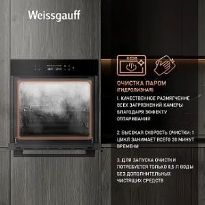 - Удобный сенсорный дисплей с крупной индикацией - это настоящая гордость Weissgauff, ведь он не только является интуитивно понятным, но и великолепно реагирует на прикосновения с первого нажатия даже в том случае, если руки влажные или прохладные.