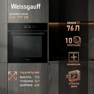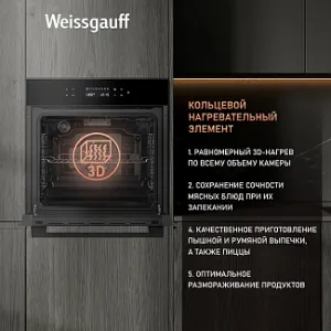 Объем XL 76 литров дает вам полную уверенность в том, что приобретая этот духовой шкаф, вы сможете разместить в нем сразу весь необходимый объем пищи, и даже профессионально работать на нескольких уровнях одновременно, порадовав себя и своих близких настоящим пиром, приготовленным в духовом шкафу Weissgauff на действительно ресторанном уровне.
