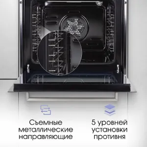 Конвекционный вентилятор обеспечивает постоянную циркуляцию горячего воздуха по всей камере, что позволяет равномерно запекать блюдо со всех сторон, а также экономить время на приготовление. Режим конвекции особенно оценят любители приготовления выпечки.