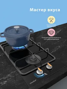 Встраиваемая газовая варочная панель оснащена функциями автоматического электроподжига и газ-контроля, благодаря которым вы можете быть уверенными в максимальной безопасности использования.