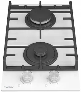 Поворотные регуляторы газовых варочных поверхностей Evelux выполнены из металла, что создает профессиональный стиль и препятствует их нагреву.