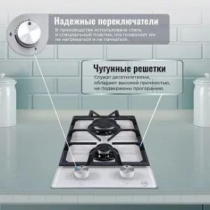 Левая ближняя конфорка: газовая, мощность 1 кВт, одноконтурная