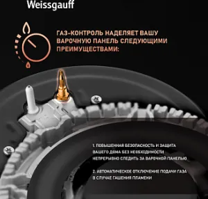 Газовая панель Weissgauff, оснащенная системами "Газ-контроль" и "Автоматический электроподжиг" - это наиболее технологичное решение среди всех моделей коллекции "Домино", в дизайне "газ на чёрном стекле".