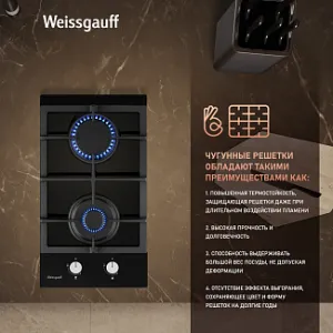 - Решетки из высококачественного чугуна это неизменное качество, надежность и долговечность, воплощенные в каждой детали! Благодаря особому строению цельных решеток Weissgauff, размещение посуды на них становится ещё более удобным и устойчивым