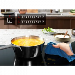 Функция «Ключ» варочной поверхности сохранит настройки приготовления даже при случайном касании панели управления — например, детьми. Это также позволит вам стереть брызги, не прерывая процесс приготовления.