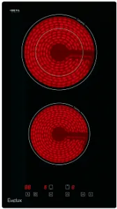 Evelux дарит Вам удобство использования двухконтурной зоны нагрева. Вы можете по выбору включать площадь нагрева большего или меньшего диаметра, подходящую под большую сковороду или маленькую кастрюлю. Площадь зоны нагрева изменяется при легком нажатии сенсорной кнопки или простым поворотом регулятора.