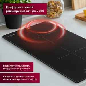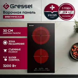Идеальная для небольших кухонь, электрическая варочная панель Gressel U30D28S100 сочетает компактность и высокую функциональность. Ширина панели всего 30 см, что позволяет эффективно использовать пространство, а мощность в 3200 Вт гарантирует отличные результаты приготовления. Эта модель оснащена двумя конфорками, включая заднюю с зоной расширения, которая позволяет использовать посуду разных размеров и быстро нагревать большие объемы.