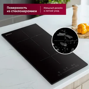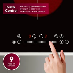 Панель управляется с помощью инновационной системы Slider control, которая обеспечивает точное и удобное управление температурой на 9 уровнях нагрева. Встроенный таймер на 99 минут автоматически выключает конфорку после завершения приготовления, сопровождая это звуковым сигналом для удобства.