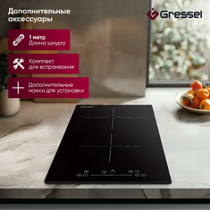Gressel дарит Вам удобство использования двухконтурной зоны нагрева. Вы можете по выбору включать площадь нагрева большего или меньшего диаметра, подходящую под большую сковороду или маленькую кастрюлю. Площадь зоны нагрева изменяется при легком нажатии сенсорной кнопки или простым поворотом регулятора.