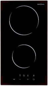 Диаметр и мощность конфорок, мм/кВт: дальняя - 200 мм * 1,8 кВт; ближняя - 165 мм * 1,2 кВт