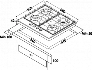 Размер ниши для встраивания в столешницу (ВхШхГ), мм: 60x560x490