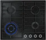 Стильная модель ARDORE представлена в черном цвете шириной встраивания 60 см. Варочная поверхность изготовлена из термостойкого стекла толщиной 8 мм с двумя чугунными устойчивыми решетками. В модели предусмотрена экспресс-конфорка с тройным пламенем и адаптер для посуды со сферическим дном.