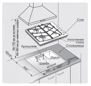 Размеры монтажного проема, ШхГхВ, см: 56x48.6