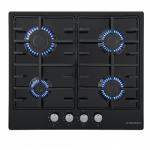 4 газовые итальянские конфорки: 2600, 1700, 1700, 1000 Вт. Фронтальное управление, 4 поворотных переключателя, автоматический электроподжиг под ручкой управления, возможность работы от магистрального газа и газа в балоне (тип G30).