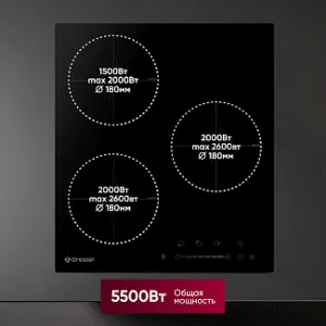 Индукционная варочная панель Gressel U45I73S001 с шириной 45 см идеально подходит для современных кухонь, где каждый сантиметр пространства на счету. Эта модель обладает мощностью 5500 Вт и оснащена тремя конфорками, каждая из которых может увеличивать свою мощность благодаря функции Boost, обеспечивая моментальный нагрев и быстрое вскипание воды.