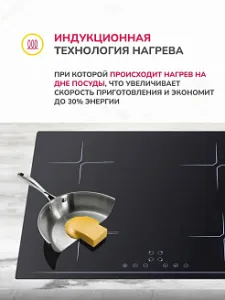 Индукционные варочные панели используют принципиально новый способ нагрева, нагрев происходит за счет электромагнитного поля и воздействует непосредственно на дно посуды, благодаря этому индукционный нагрев считается одним из самых быстрых и имеет высокий КПД. Позволяет точно контролировать температуру приготовления за счет моментального изменения мощности нагрева, что позволит приготовить разнообразные кулинарные блюда. Поверхность индукционных панелей нагревается только от посуды и по этой причине нагревается не очень сильно, быстро остывает в выключенном состоянии, что снижает риск получения ожогов и способствует легкому уходу за панелью.