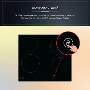 - БЛОКИРОВКА ОТ ДЕТЕЙ. Чтобы заблокировать кнопки варочной панели и избежать случайного вмешательства со стороны ребенка.