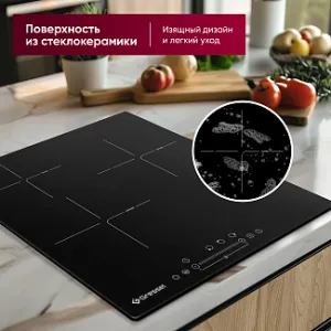Для повышенной безопасности предусмотрена блокировка панели управления, которая предотвращает случайные нажатия и делает панель безопасной для семей с детьми. Индикатор остаточного тепла информирует о том, что поверхность еще горячая, предотвращая возможные ожоги.