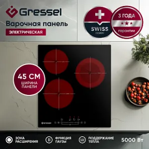 Закаленное стекло варочной панели не только выглядит изящно, но и легко чистится, что делает уход за панелью простым и удобным. Электрическая варочная панель Gressel U45D29S100 — это идеальный выбор для тех, кто ищет функциональность, стиль и безопасность в одном устройстве.