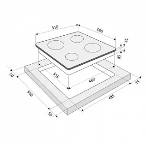 Диаметр и мощность конфорок, мм/кВт Дальняя левая: 145 мм * 1,2 кВт; Дальняя правая: 145/180 мм * 0,7/1,7 кВт; Ближняя левая: 180 мм * 1,8 кВт; Ближняя правая: 145 мм * 1,2 кВт
