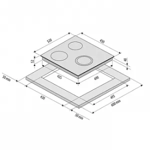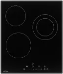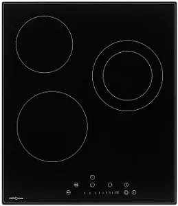 Диаметр и мощность конфорок, мм/кВт Дальняя левая: 165 мм * 1,2 кВт; Ближняя левая: 200 мм * 1,8 кВт; Центральная правая: 120/200 мм * 1/2 кВт