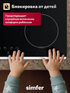 Защитное устройство самоотключения в варочных поверхностях Simfer выключает конфорки или всю варочную панель через определенное время, если с вашей стороны не поступает никаких других команд.