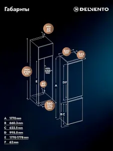 Встраиваемый двухкамерный холодильник Delvento VBW36420